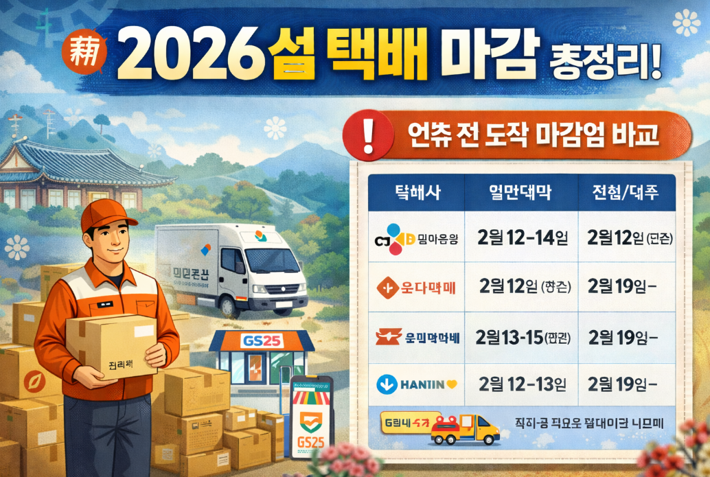 지금 바로 각 택배사의 공식 홈페이지와 가까운 영업소를 통해 정확한 마감일을 확인하시고, 설날 명절 선물이 제시간에 도착할 수 있도록 준비해 주세요.