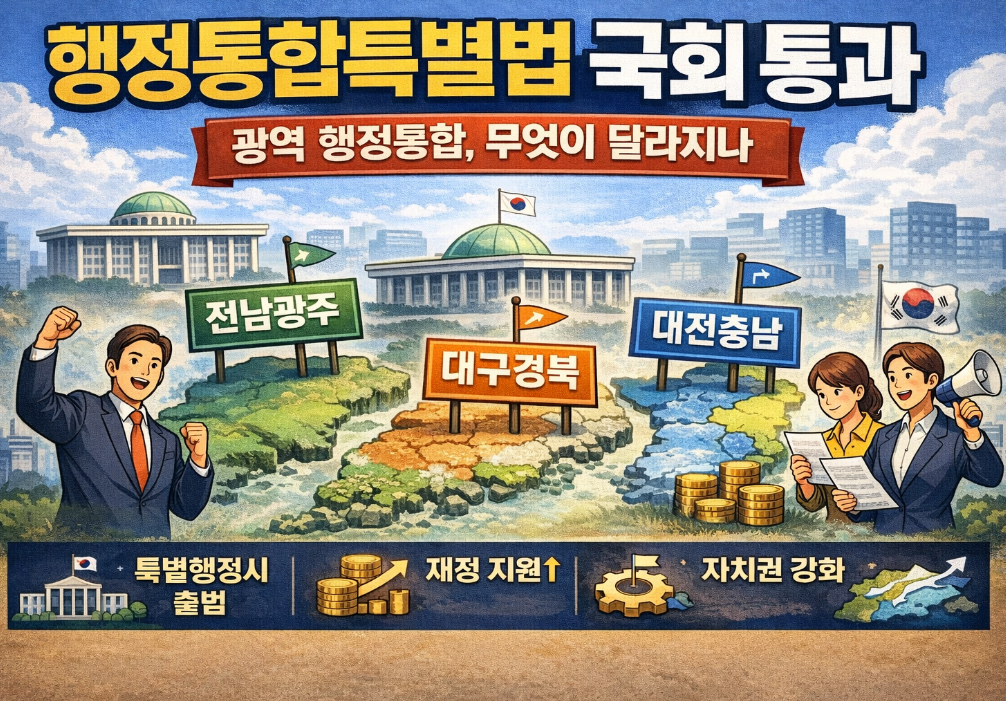 행정통합은 단순히 행정구역을 결합하는 문제가 아니라 금융권, 산업권, 교통권, 자치권 전체를 재설계하는 고도의 정책 과제입니다. 따라서 통합의 성패는 제도적 기반이 어떻게 구축되느냐에 따라 결정됩니다. 이러한 상황에서 전남도, 대구-경북도, 대전충남도 행정통합특별법이 국회 행정안전위원회를 통과하면서 통합 논의는 새로운 국면에 접어들었습니다.
