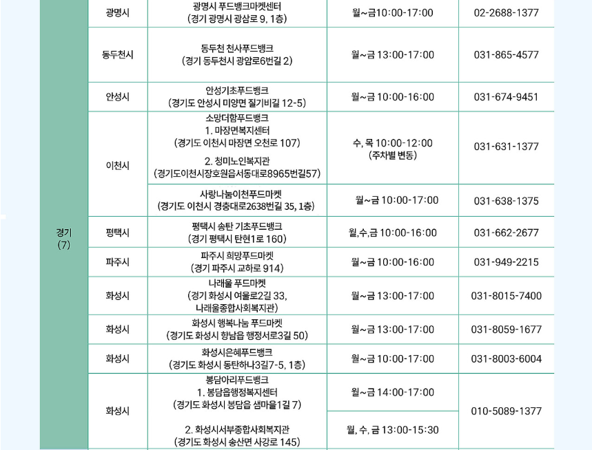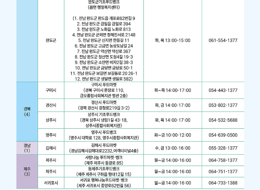 주로 지역별로 종합사회복지관, 식품시장, 지역 복지시설에서 운영되고 있으며, 수도권뿐만 아니라 지역 중소도시와 농촌 지역으로 점차 확대되고 있습니다.